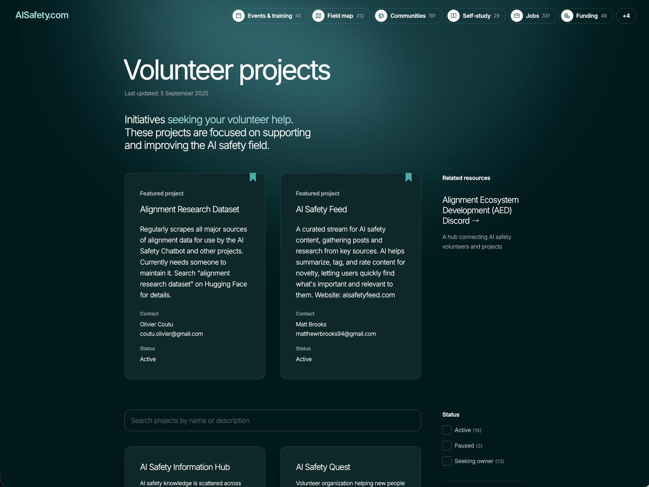A homepage for AI safety, linking out to the relevant parts of the ecosystem.